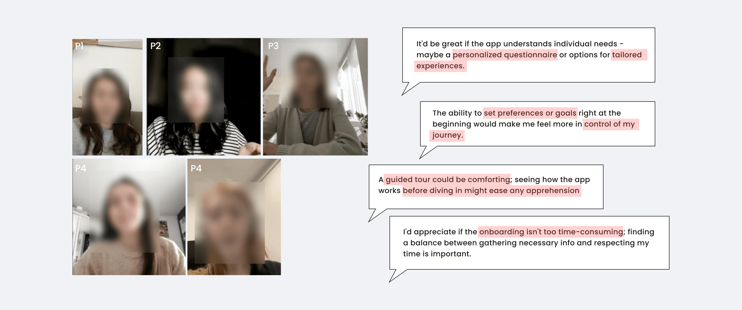 We conducted 42 remote, moderated usability interviews, along with a Nielsen heuristic evaluation, Cognitive Walkthrough, and Product psychology of the full onboarding and assessment flow. Participants were 19–32 years old, 84% women across multiple regions of EU and North America.