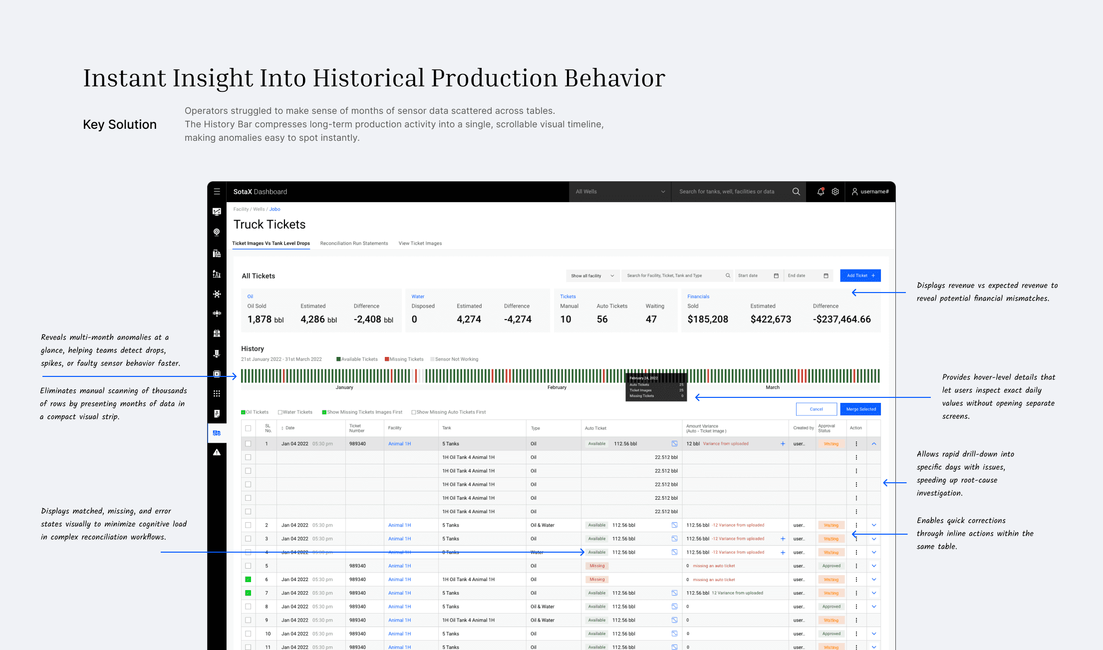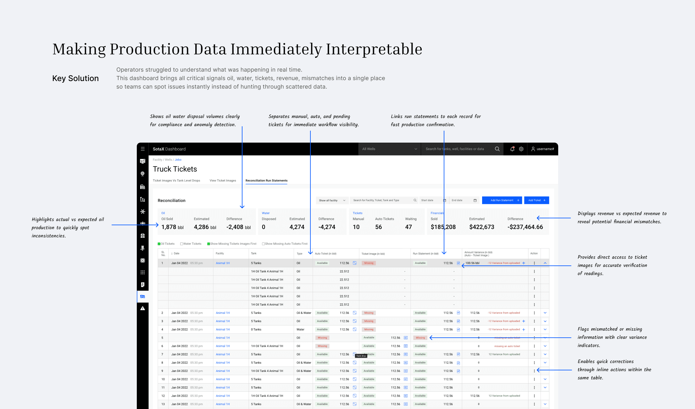 Matching tank tickets with run statements was slow, inconsistent, and financially risky especially when physical tickets were misplaced or illegible.
